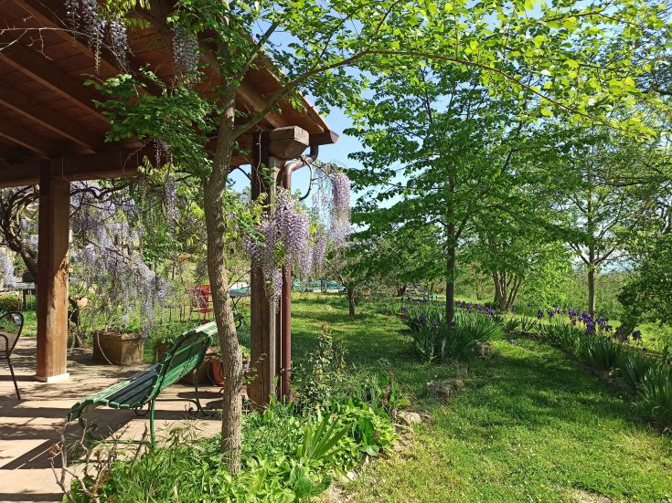 Die Außenanlage bietet einen großzügig angelegten Garten mit 1000 Quadratmetern Rasen sowie einen Gemüse- und Kräutergarten, den die Gäste benutzen können. Auf dem Anwesen verteilt finden sich Sitzgruppen aus Tischen und Stühlen, Liegestühlen, Liegen sowie Sonnenschirme. Es liegt auf einem 20 Hektar großen Privatgrundstück, zwischen Olivenhainen, Obstbäumen, kleineren Waldflächen und Feldern, auf denen Sonnenblumen, Weizen und Mais kultiviert wird. Ein privater Pool von 14x6 Meter mit Liegestühlen und Sonnenschirmen steht den Gästen zur freien Verfügung. Es besteht die Möglichkeit auf zwei angelegten Rundwegen, von 400 und 1500 Metern, um die Wohnanlage oder durch die angrenzenden Olivenhaine, zum joggen, walken, biken oder einfach nur spazieren zu gehen. Gern stellen wir ohne Aufpreis Zustellbett, Babybett, Kinderstuhl, Babytrage sowie Spielzeug zur Verfügung. Ein großer Parkplatz befindet sich neben der Wohnanlage. Weiterhin stellen wir für den Innenbereich Handtücher zur Verfügung: ein Gästehandtuch, ein Handtuch und ein großes Badetuch.Leider können wir keine Badetücher für den Außenbereich bereitstellen. Wir Verfügen nicht über Kinderbettwäsche. WiFi-Verbindung bereich auf Anfrage. Klimaanlage.Das apartment "Il Mandorlo" ist behindertengerecht eingerichtet und ist mit einem ebenerdigen Wohn- und Essbereich, Bad sowie Schlafzimmer ausgestattet. Es gibt die Möglichkeit für viele weitere Aktivitäten wie: ein öffentliches Schwimmbad, Tennisplatz, Wanderungen und Exkursionen, Reiten, Angeln, MTB taugliche Wege und Golf.