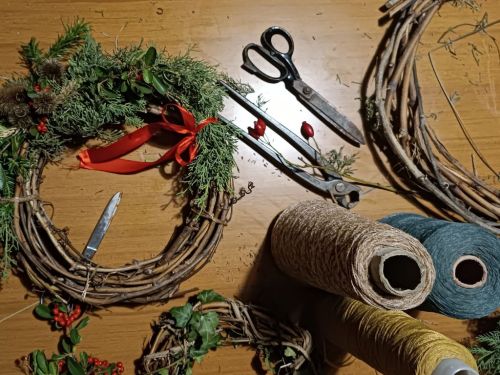 Ghirlande a tema Natale, con materiali raccolti nel bosco