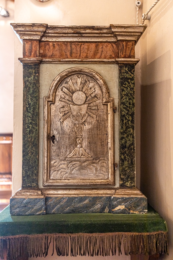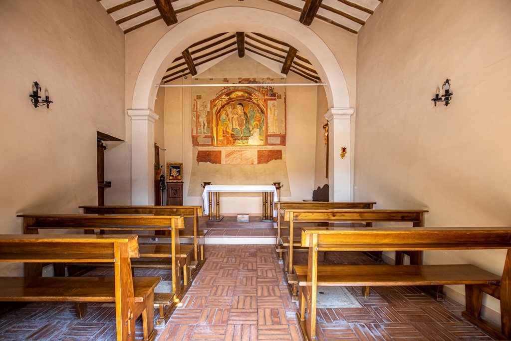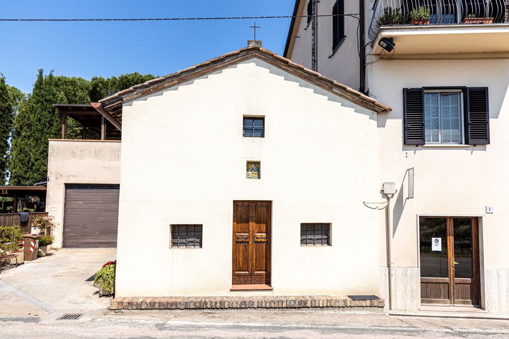 The presence of the three saints that the artist placed around the Madonna was not an accident. Saints Antonio, Bernardino and Sebastian were the saints used to obtain liberation and healing from plague. These types of pictorial representations are often found on the many shrines and votive chapels scattered across Umbria.
