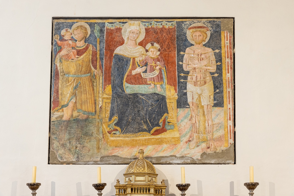 The town still maintains its defensive walls and towers, one of which has been transformed into a bell tower, where, according to the tradition, there was a guillotine used for official executions. A previous church located close the walls is dedicated to St. Matthias the Apostle (San Mattia Apostolo). Inside there are kept beautiful frescoes from the 14th and 15th centuries, as well as the altar stone, a piece of art from the Lombard period. From this little church comes the precious fresco of the Madonna della Luce, now visible in the Sanctuary outside the castle walls.