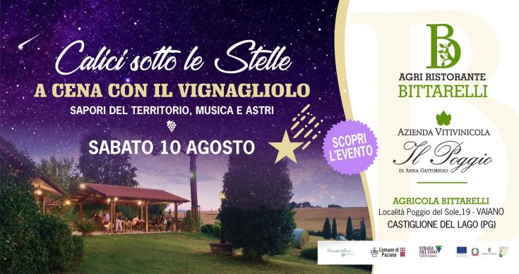 Nell’incantevole scenario naturale delle colline del Trasimeno, aspetteremo le stelle cadenti a tavola, assaporando un menù speciale dove il vino sarà l'ingrediente regnante.