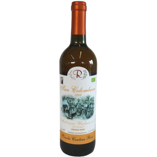 Blanc Umbria IGT Natural Organic, Orange. Raisins vendangés à la main, vin non filtré macéré 3 jours sur la peau, pressé avec un pressoir en bois et fermenté spontanément à la température de la cave avec des levures indigènes.