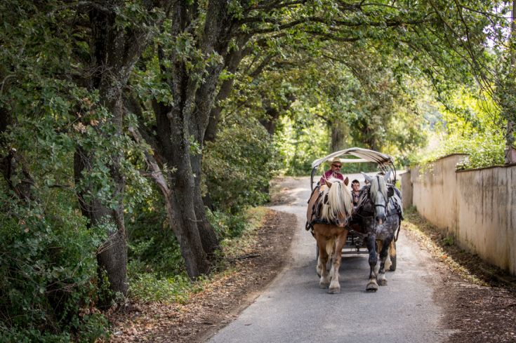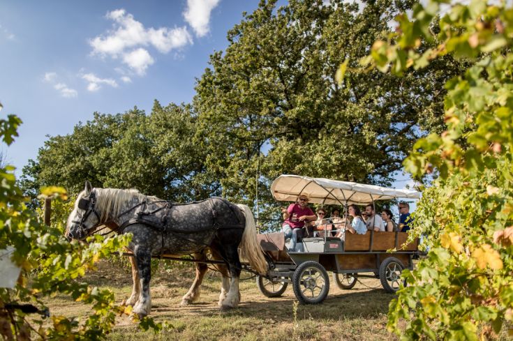 Promenade en calèche pour découvrir la philosophie biologique et les vignobles "oies et chevaux".