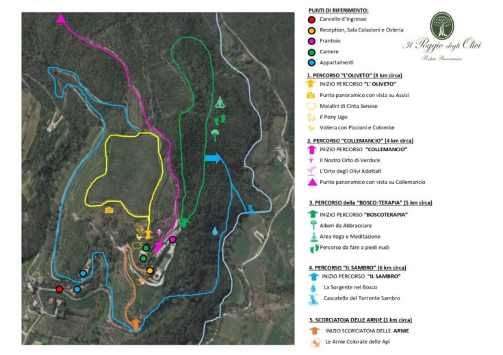 Randonnée pédestre sur l'un des sentiers au choix à Poggio degli OliviSentier "L'oliveto" (env. 3 km)Sentier "Collemancio" (env. 4 km)Sentier "Bosco Terapia" (env. 5 km)Sentier "Il Sambro" (env. 6 km)Sentier "Scorciatoia delle Arnie" (env. 1 km)+A la fin du parcours, dégustation de nos produits 0 km à notre relais Il Poggio degli Olivi
