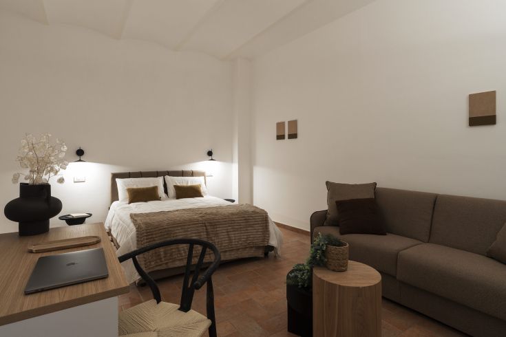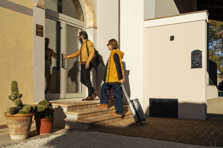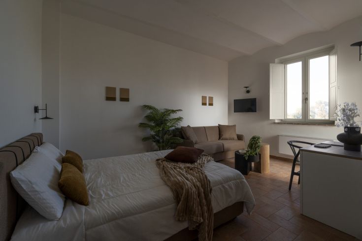 Casale Magrini is a structure created to be convenient, accessible, close to everything that is really needed. And perhaps for this very reason, so surprisingly welcoming.Located just outside Foligno, Casale Magrini presents itself with that sober elegance that has no need to show off. The six rooms welcome you with elegance, designed and furnished with authentic materials, terracotta underfoot, wooden beams overhead, and a colour palette designed to put you at ease, right from the first glance.There is nothing constructed or fake about these spaces. Only the desire to offer a real break, made up of quietness, comfort and small details that make the difference. Here you wake up with the light coming in gently through the windows, you return in the evening with the sensation of finally being in a place that listens to the needs of those who travel, work and live.Casale Magrini is a conscious choice, for families looking for a safe and welcoming base, for workers who want to feel at home even when far from home, for those who travel with their dog and want to be welcomed without reservations or excuses. To breathe. To find a balance, if only for a few days.