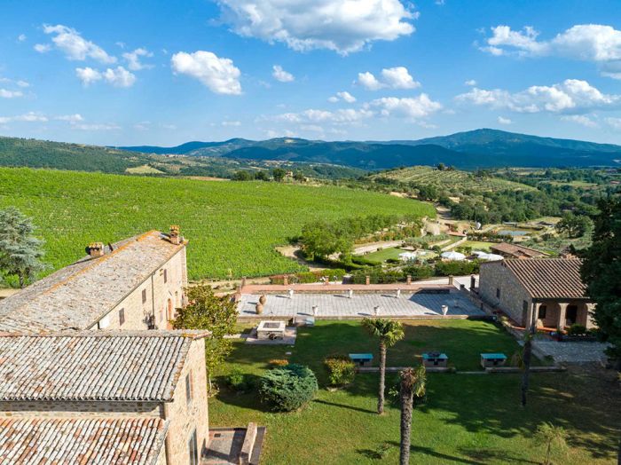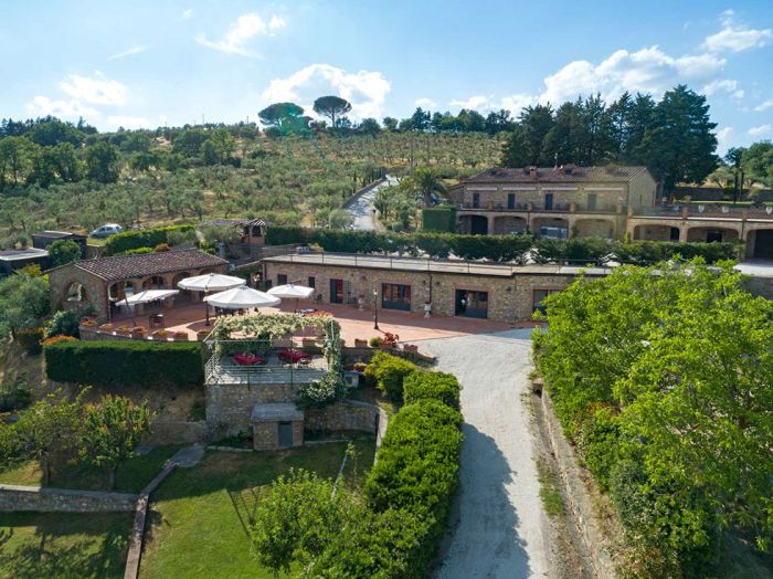 Located near Lake Trasimeno, in the municipality of Panicale, listed among the most beautiful villages in Italy and awarded the Orange Flag. It consists of about 30 hectares of land cultivated with vineyards and olive groves. The structure, which has been completely restored, dates back to the 14th century with regard to the ancient aedicule of the Madonna di Santa Maria della Querciolana (Our Lady of Milk).The Church was built around the aedicule in 1480 and a few years later, on the dispensation of the Bishop of Chiusi, the first mass was celebrated.In 1497 the Benedictine monks enlarged the Church and built the small Convent. The frescos by masters of Italian painting such as Bartolomeo Caporali (father) and Giovan Battista Caporali (son), a pupil of Perugino (Pietro Vannucci), remain to this day. The farm, equipped with a swimming pool and tennis court, offers the possibility of holiday stays. It is also possible to carry out tastings or 'wine experiences' of wine, oil and other products from the farm.