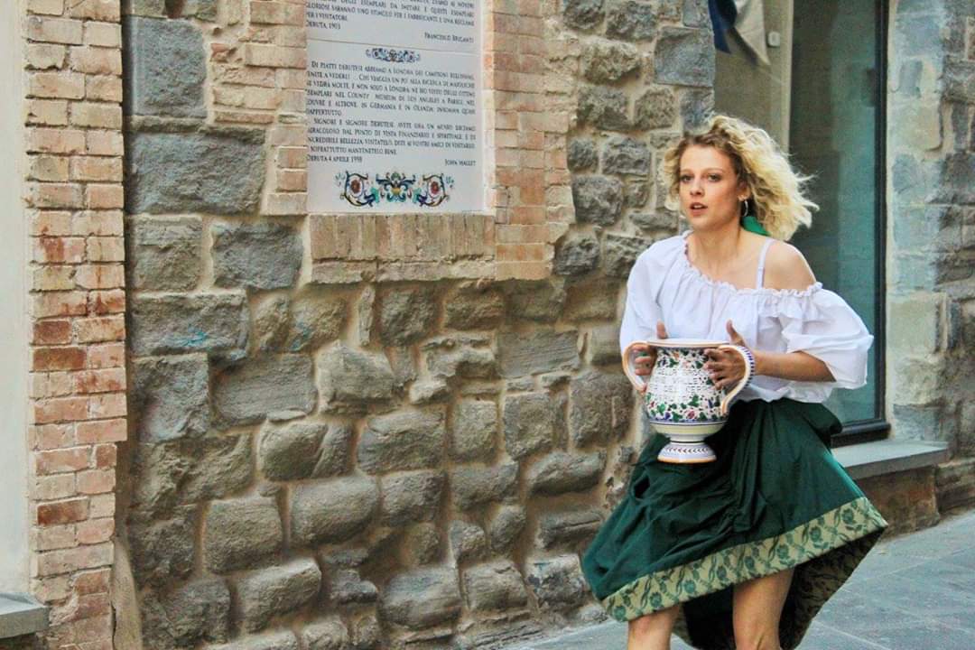 Palio della Brocca is a beautiful and exciting event that is held every year and eagerly awaited by Deruta residents, capable of promoting fun and healthy competition. The Palio is a historical re-enactment of the mid-19th century that takes place between the end of August and the beginning of September. With historical reenactments, ancient challenges, and folkloric shows in the splendid setting of Piazza dei Consoli, the famous city of ceramics takes a leap to the past. The three districts participate in the event - Piazza, Valle and Borgo - each of which has as its reference one of the access gates to the town: Porta di Sant'Angelo for the Rione Piazza, Porta del Cerro for the Rione Valle and Porta Romana for the Rione Village.