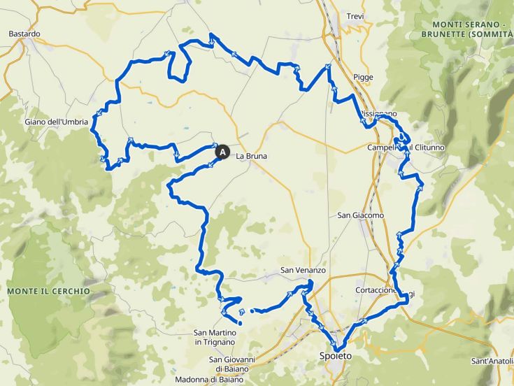 Les itinéraires sont conçus comme une boucle avec départ/retour dans l'un des principaux lieux de la région : Spoleto, Campello sul Clitunno, Castel Ritaldi, Trevi, etc.