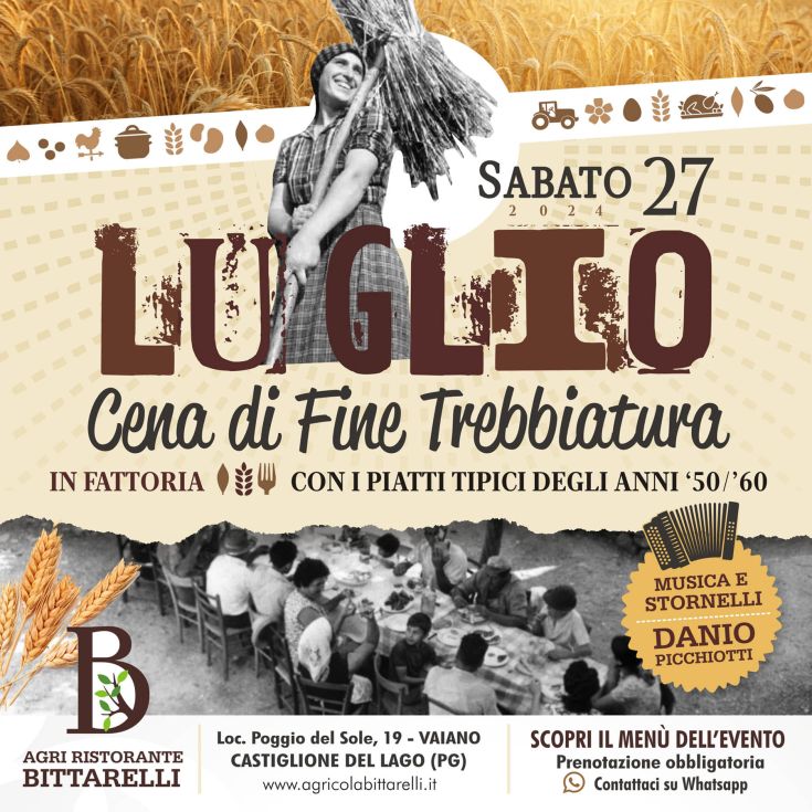 Celebriamo insieme la fine della trebbiatura 2024 con la nostra cena tradizionale a base di piatti tipici della cucina rurale degli anni '50/'60