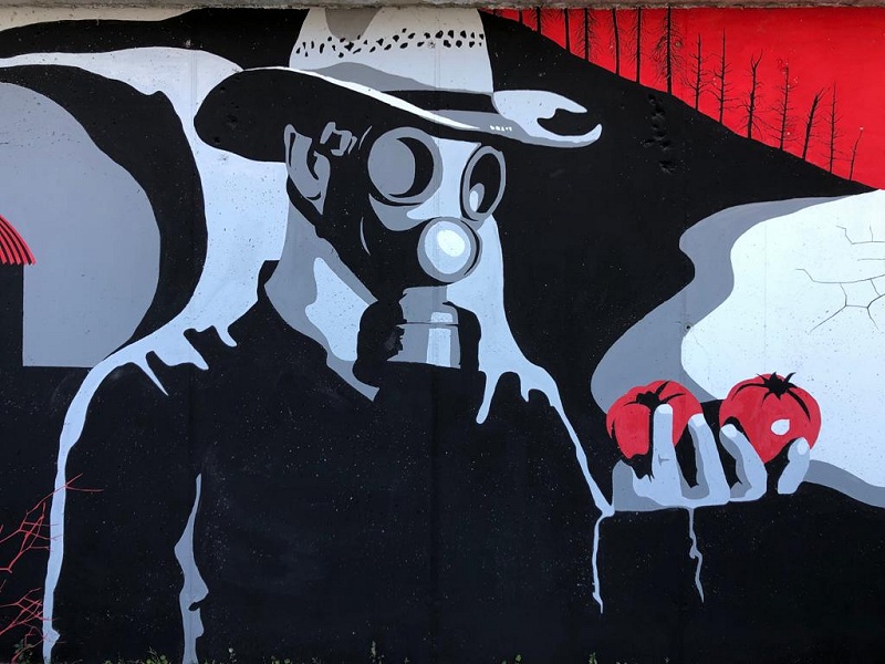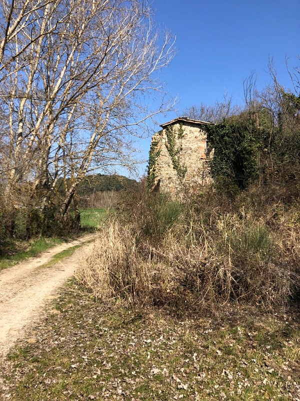 Dopo circa 1,3 Km si prende ancora a sinistra proseguendo in discesa nel bosco per un Km circa per prendere ancora a sinistra per proseguire sul lato opposto della piccola gola collinare fino ad arrivare ai ruderi dell’antico Mulino delle Botte, oramai completamente in rovina, ubicato lungo strada che costeggia il torrente Puglia, in prossimità del bivio per Gaglietole. Architettonicamente la costruzione si presenta composta da un corpo a base pressoché quadrata con a fianco un piccolo ampliamento. I muri perimetrali sono costruiti in pietra di fiume mista a laterizi. Superati i resti dell’antico Mulino si prosegue su strada sterrata fino a prendere la Strada Gaglietolese in salita in mezzo al bosco. Si segue la sterrata fino ad arrivare in Via Jacopone da Todi e ricongiungersi alla strada asfaltata Via dell’Abbazia dove si incontra il convento di San Lorenzo in cui è possibile visitare la cripta di Jacopone da Todi. Superato il Monastero si prosegue dritti su Via dell’Abbazia per tornare verso il centro storico di Collazzone da Viale Marconi, passando per una visita al murales “Madre natura” che si trova sulla parete del parcheggio pubblico di Viale Marconi, opera di street art, realizzata da un gruppo di artisti del territorio. Di grande impatto visivo, il murales è composto da una serie di colori sgargianti e da due metà divise dal viso centrale di una donna in lacrime, Madre Natura. Spostata sul lato sinistro è una famiglia a tavola, i loro volti sono teschi mentre, accanto, sfila un contadino con la maschera antigas, sullo sfondo di colline bruciate e di un edificio con la classica forma ondulata dei tetti in eternit ancora presenti in grande quantità nel nostro territorio. Qui, il colore predominante è il rosso acceso.