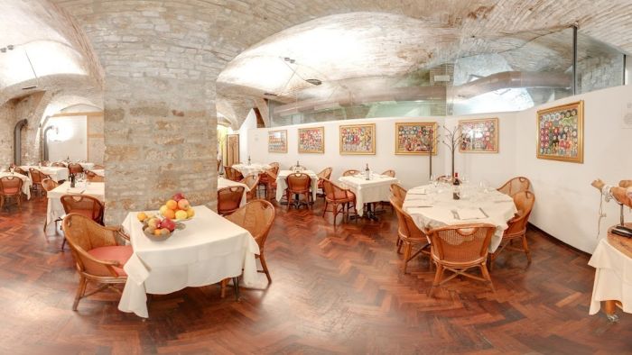In questo ristorante definito dal suo stesso proprietario una trattoria di lusso, non si viene solo per mangiare un'ottima cucina tradizionale umbra: all'Altromondo – i nomi sono conseguenza delle cose – si viene per leggere. Eh si, per leggere del passato, del presente e, a volte, del futuro di Perugia. Tra queste antiche volte, infatti, si sono avvicendate generazioni di Perugini: famiglie di ogni tradizione, noti banchieri ed avvocati spesso mescolati con celebrità nostrali, turisti stupiti alla vista e nel palato da tanta genuinità e noti o meno noti personaggi delle culture di tutto il mondo. Alle pareti del nostro ristorante, però, non ci sono foto di ospiti celebri che dovrebbero in qualche modo far sentire onorati gli ospiti meno celebri di mangiare lì, ma quadri con coccarde di concorsi ippici e quadri “un po' astratti” che fanno da sfondo a questo convivio allegramente rumoroso dove tutti, grazie alla semplicità del cibo ed alla cortesia del personale, si sentono tra amici. Sentirsi a proprio agio mentre si assaporano piatti della cucina tradizionale perugina creati con maestria da oltre quarant'anni; sentirsi felici nel percepire che sei di fronte a materie prime che solo chi ha contatti costanti con la nostra terra può reperire, beh, ti fa davvero pensare che c'è ben poco altro da chiedere ad un ristorante.