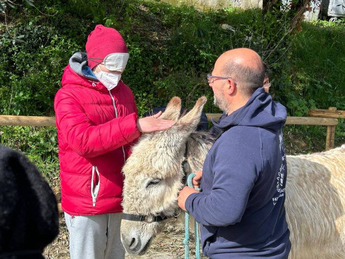 Presso la nostra fattoria si praticano attività didattiche educative e attività di Pet Terapy. Siamo specializzati in Interventi Assistiti con Animali, nei quali incentiviamo una relazione positiva tra i partecipanti e gli animali, in particolare con gli asini della fattoria, ma anche con i cani e coinvolgendo le capre e i volatili del pollaio. Partendo da questa relazione sviluppiamo esperienze di promozione della socialità, dell’emotività e della conoscenza di sé.