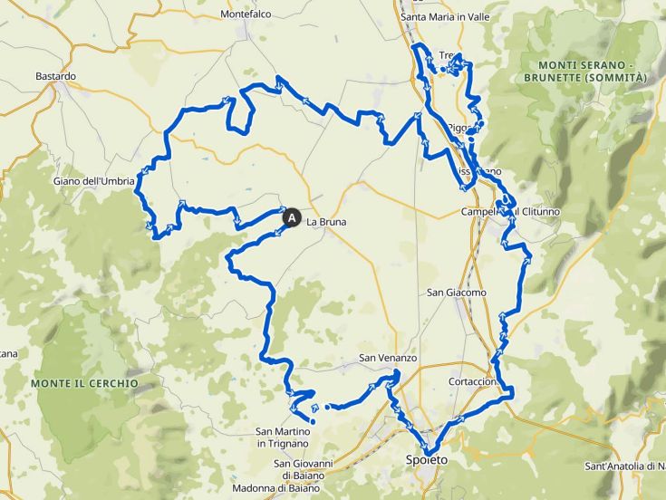 I percorsi sono sviluppati ad anello con partenza/ritorno in uno dei luoghi principali del territorio: Spoleto, Campello sul Clitunno, Castel Ritaldi, Trevi, ecc.