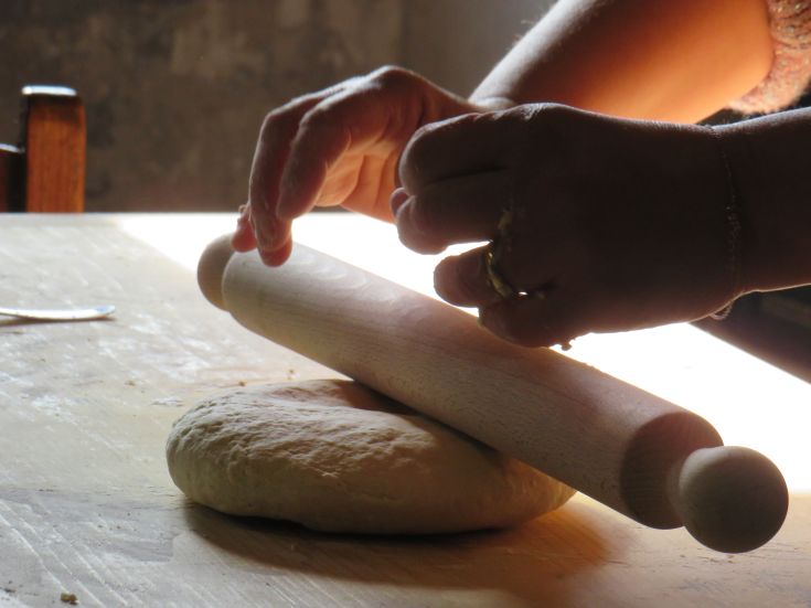 All'interno della grande cucina di un antico casolare contadino pregno di storia e tradizioni, potrete avere il piacere di essere guidati nella preparazione della caratteristica focaccia umbra impastando nella spianatoia e stendendo con il mattarello. Potrete cuocerla nel grande camino sotto la brace e poi potrete degustarla all'ora di pranzo o per merenda assieme ad affettati e vino umbro.