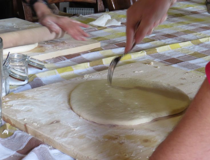 Una simpatica e divertente lezione di cucina su quella che è la più famosa focaccia umbra: la "torta sul panaro". Impasterete gli ingredienti sulla spianatoia, la stenderete con il mattarello e poi la cuocerete sulla brace del camino.