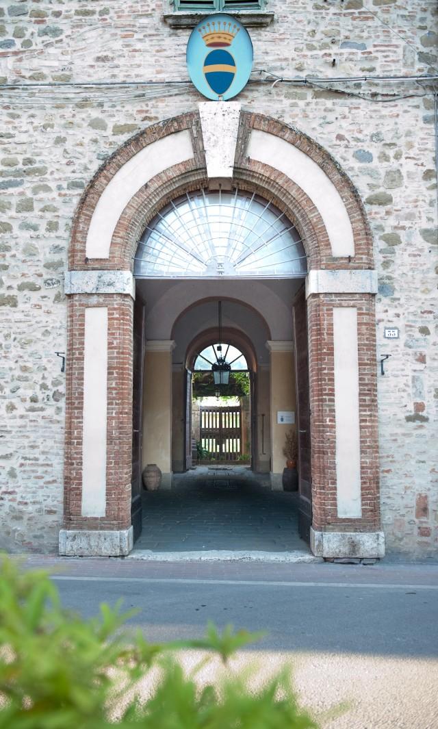La facciata principale volge verso Corso Vittorio Emanuele II, sul quale si aprono sia il portone principale, che dà accesso alla scalinata attraverso cui si raggiunge la parte residenziale dell'edificio, che il portone secondario; quest'ultimo costituiva l'ingresso alla parte agricola dell'edificio, con locali un tempo adibiti all'amministrazione della proprietà terriera, alle attrezzature per la lavorazione delle derrate agricole e all'immagazzinamento dei prodotti. Oggi da questo ingresso si accede al Museo del Vino, un museo privato nato nel 1974 per volontà e impegno di Giorgio e Maria Grazia Lungarotti.