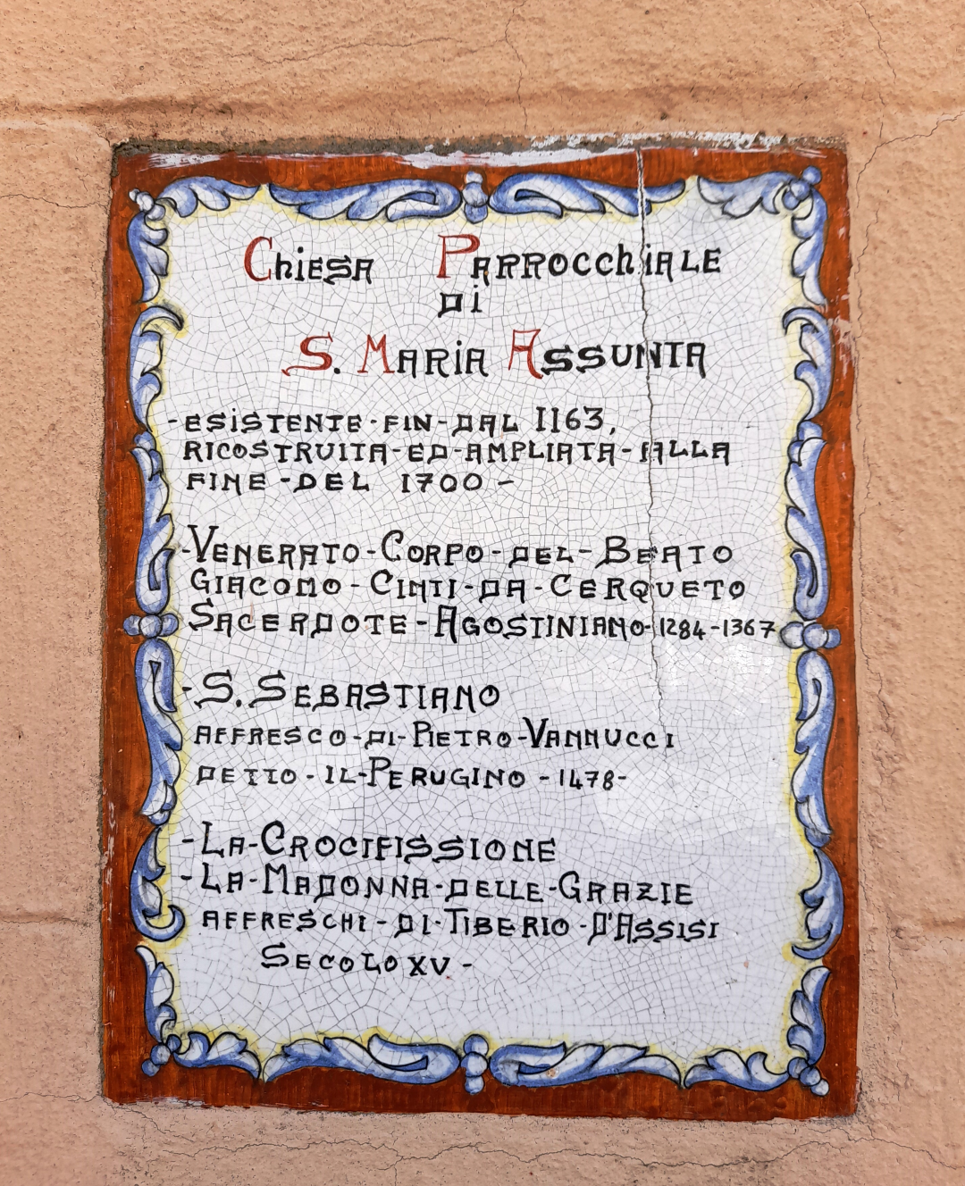 Il primo centro che si incontra è Cerqueto, luogo ricco di storia e arte. Addentrandoci dentro il borgo, risalente al XII secolo, ci accorgiamo che il nucleo originario è rimasto pressoché intatto, con il suo impianto circolare e le abitazioni in laterizio con archi antichi. Da non perdere la chiesa Parrocchiale di Santa Maria Assunta, esistente già dal 1163 in cui è possibile ammirare affreschi del Perugino e di Tiberio d’Assisi.