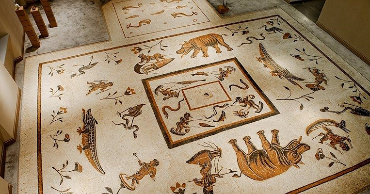 The former Salesian convent on Via del Convitto houses the Museo Città di Cannara (Museum of the Town of Cannara), displaying archaeological finds from the excavations of Urvinum Hortense, including a remarkable 65-square-meter mosaic from the baths of the ancient municipium, dating between the late 1st and early 2nd century AD. It depicts Nilotic scenes with exotic animals and lush vegetation as the backdrop for various figurative scenes. The central panel shows figures fishing, surrounded by marine animals. The museum also preserves numerous detached frescoes, paintings and sculptures by Umbrian artists such as Dono Doni and Marcantonio Grecchi.